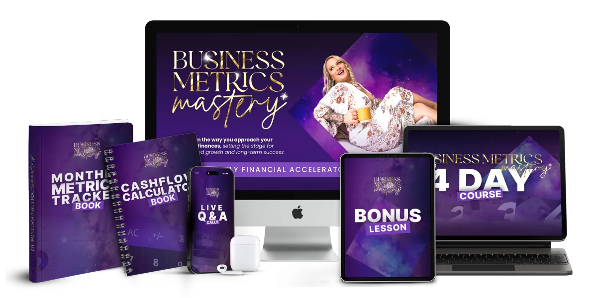 You’re just one step away from transforming your business finances and unlocking the full potential of your cash flow and metrics. Business Metrics Mastery is a 4-day LIVE experience designed to make financial management simple, strategic, and sustainable for soul-led entrepreneurs like you.
